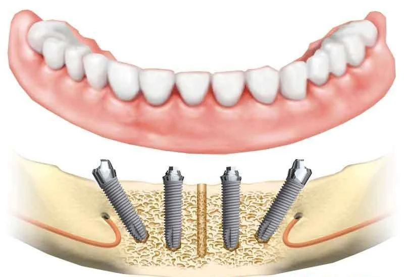 Çoklu diş kayıplarında her kaybedilen diş için birer implant uygulanmaz. Onun yerine kaybedilen diş sayısına göre 4 veya 6 implant uygulanarak tüm çene diş eksiklikleri giderilir.