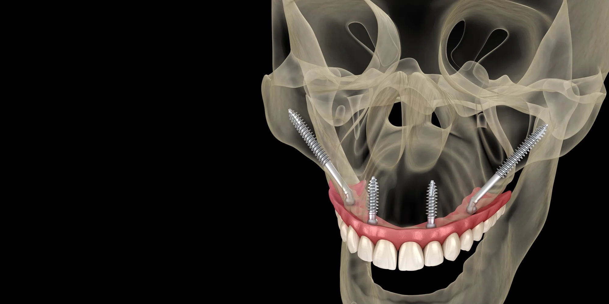 Bu tarz durumlarda çenelerin ön bölgelerinde olan sınırlı kemiğe 4 adet açılı implant yapılır. Bu implşantlardan ikisi açılı ikisi düz olarak yerleştirilir.